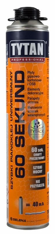 Višenamjensko ljepilo od PU pjene s visokom snagom lijepljenja na mnoge materijale i podloge. Jedinstvena formulacija temeljena na tehnologiji TYTACK omogućuje brzo početno lijepljenje nakon samo 60 sekundi te nema postekspanzije, što osigurava stabilnost povezanih elemenata i sprječava deformacije.