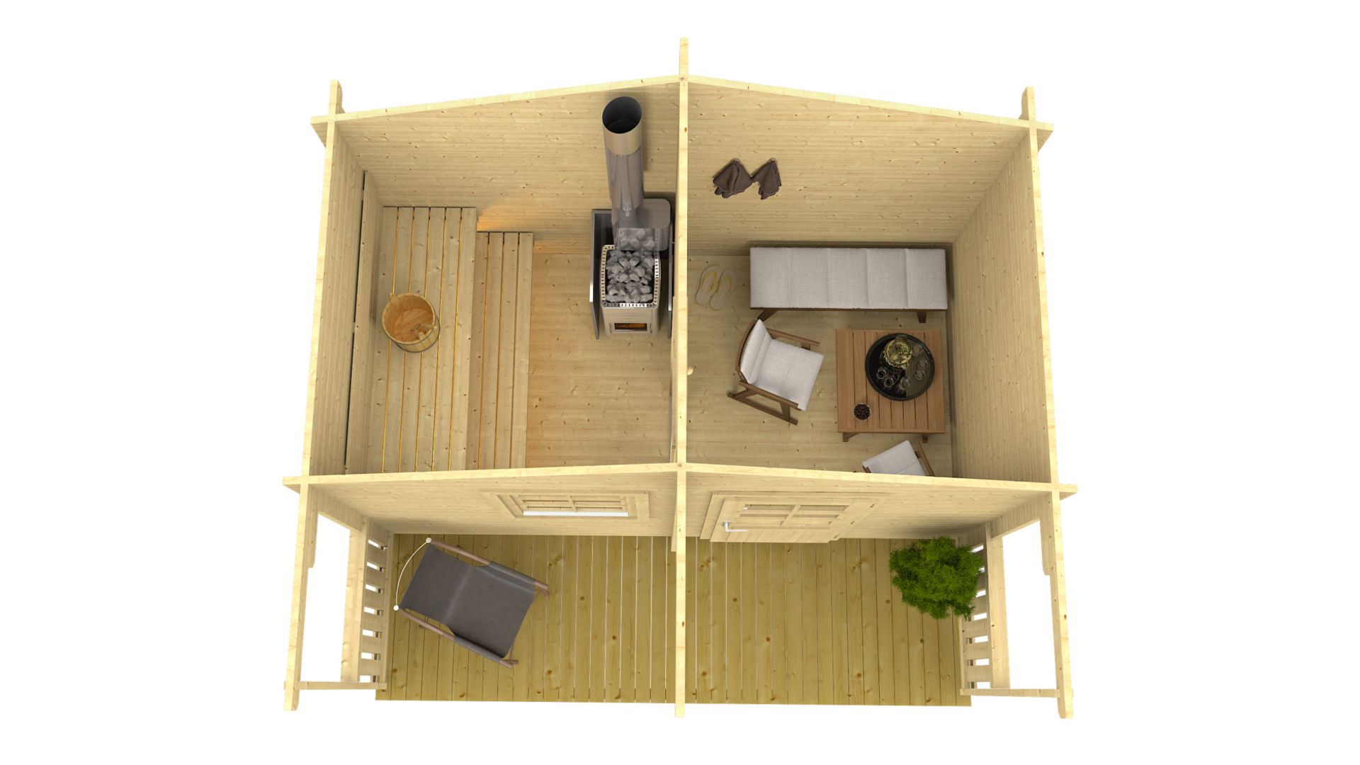 Set Maridinih drvenih sauna debljine 40 mm uključuje sljedeće: