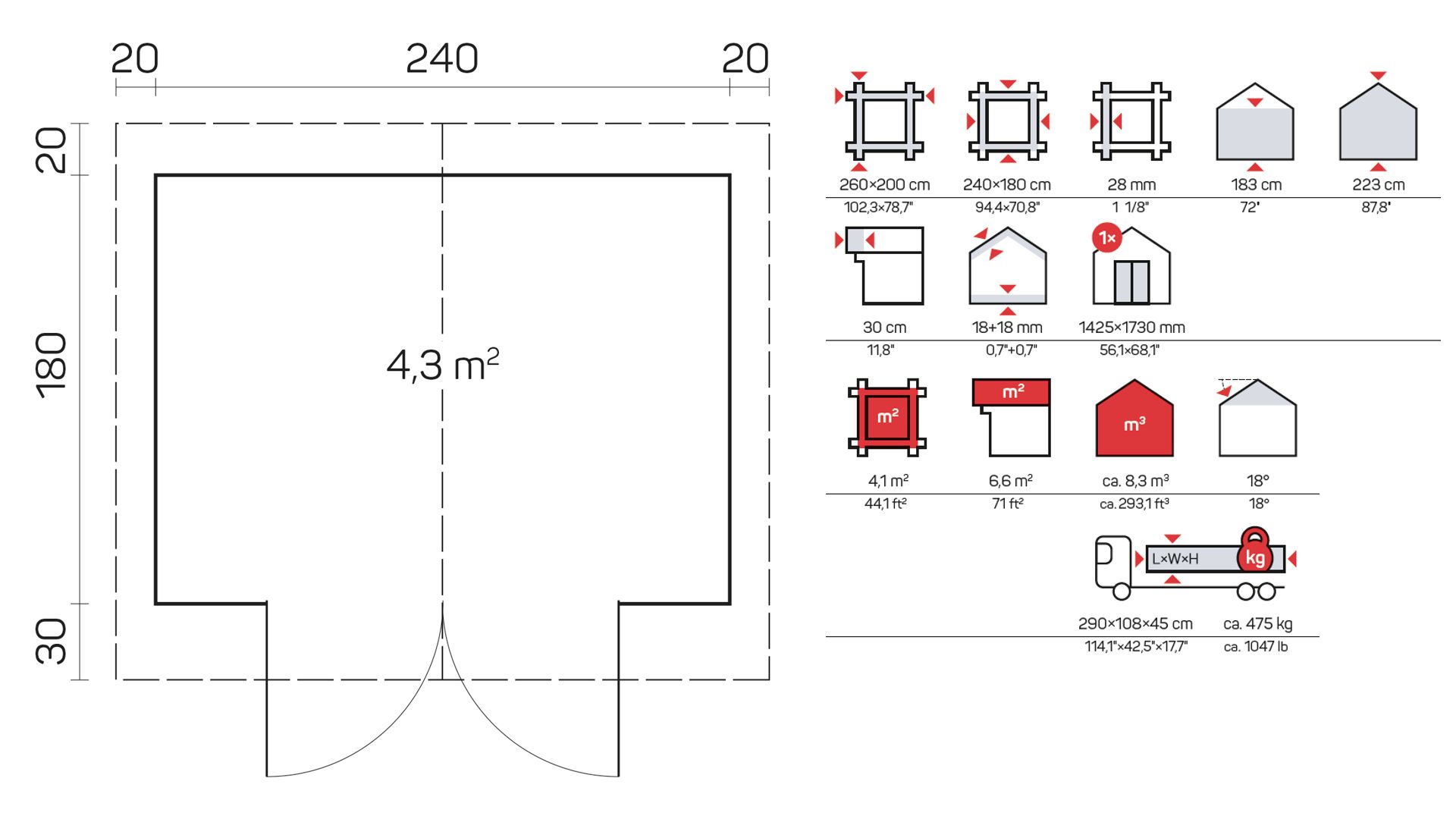Dimenzije zidova (širina x dužina): 240 x 180 cm