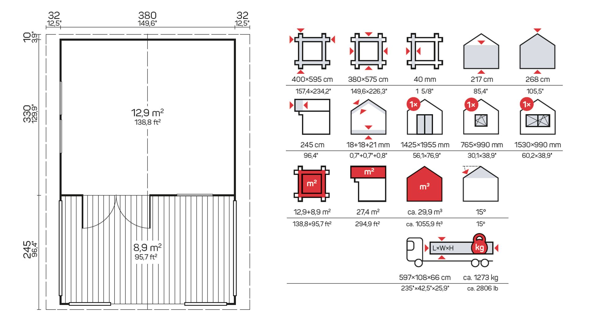 Vanjske dimenzije (širina x dužina): 400 x 595 cm